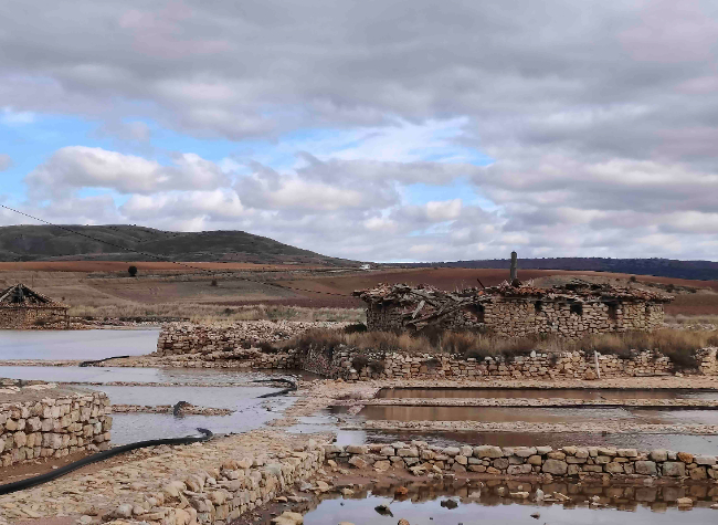 Paseando por los caballones o caminos que discurren entre las eras o albercas -pequeños estanques de escasa profundidad para almacenar el agua salina-, averiguamos el porqué de la existencia de yacimientos salinos en estas zonas del interior peninsular. En un viaje en el tiempo hasta la era Mesozoica, nos imaginamos el supercontinente Pangea, el mar de Tetis, los movimientos de las placas tectónicas, lechos marinos y depósitos milenarios de halita -sal en su forma mineral-. Después, el agua dulce solo tuvo que filtrarse entre las rocas y se crearon los manantiales de agua salina y las bolsas de salmuera.