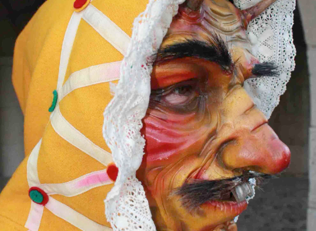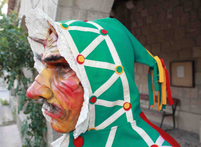 Una de las botargas más interesantes por su grotesca máscara, su traje arlequinado, de colores chillones a grandes trozos contrapeados, con una joroba o zurrón y una caperuza en la cabeza; leva un rabo denominado higa lleno de alfileres para que los niños no puedan tirarle de él, en la cintura campanillas y unas grandes castañuelas y una cachiporra con la que pega y amenaza al público.