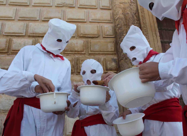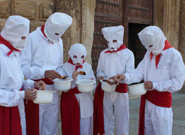 Al atardecer del miércoles de Ceniza, fecha divisoria entre el Carnaval y la Cuaresma, aparecen por las calles del municipio un grupo de jóvenes, de cuatro a seis personajes vestidos con pantalón y camisa blanca, con fajas y pañuelos rojos y encapuchados con un saquillo de tela blanca provista de pequeños orificios a la altura de los ojos y la boca.