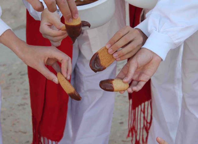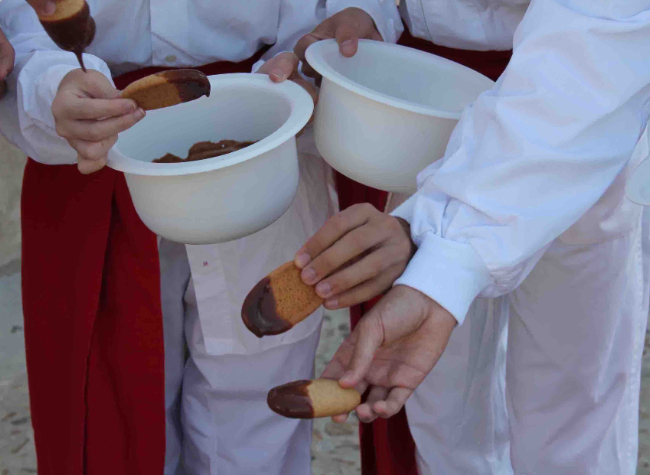 Son unos personajes que en su atuendo recuerdan a los mozos de San Fermín en Pamplona. Van armados con un orinal o un pequeño brasero, lleno de chocolate y acompañado de bizcochos que ofrecen a los viandantes que se encuentran en su camino. Suelen actuar y recorrer las calles por parejas y se les podría considerar que representan al demonio y a las fuerzas del mal portadores de la tentación: si aceptas probar el chocolate pecarás al romper el ayuno de esta fecha en que se estrena la Cuaresma, si no aceptas, se vengarán manchándote de chocolate.