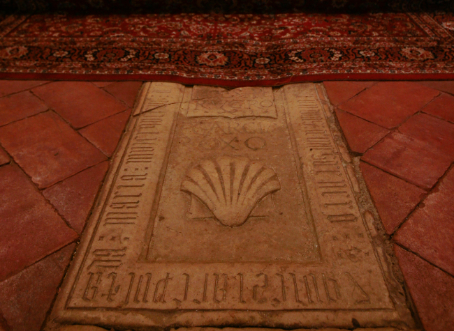 Lápida con la concha jacobea en la Iglesia de la Asunción en El Cubillo de Uceda.