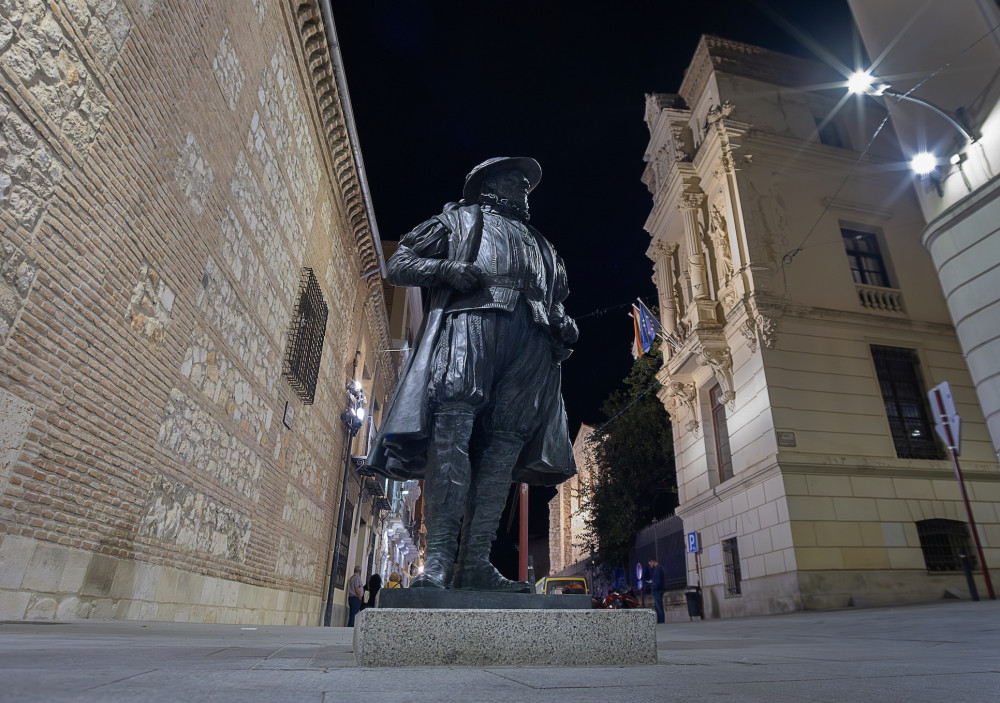 A pocos metros de este bello conjunto, en la acera, sorprende por su presencia una escultura dedicada al Comendador, que rinde homenaje a la Asociación Gentes de Guadalajara, responsable de la representación de El Tenorio Mendocino desde 1991.