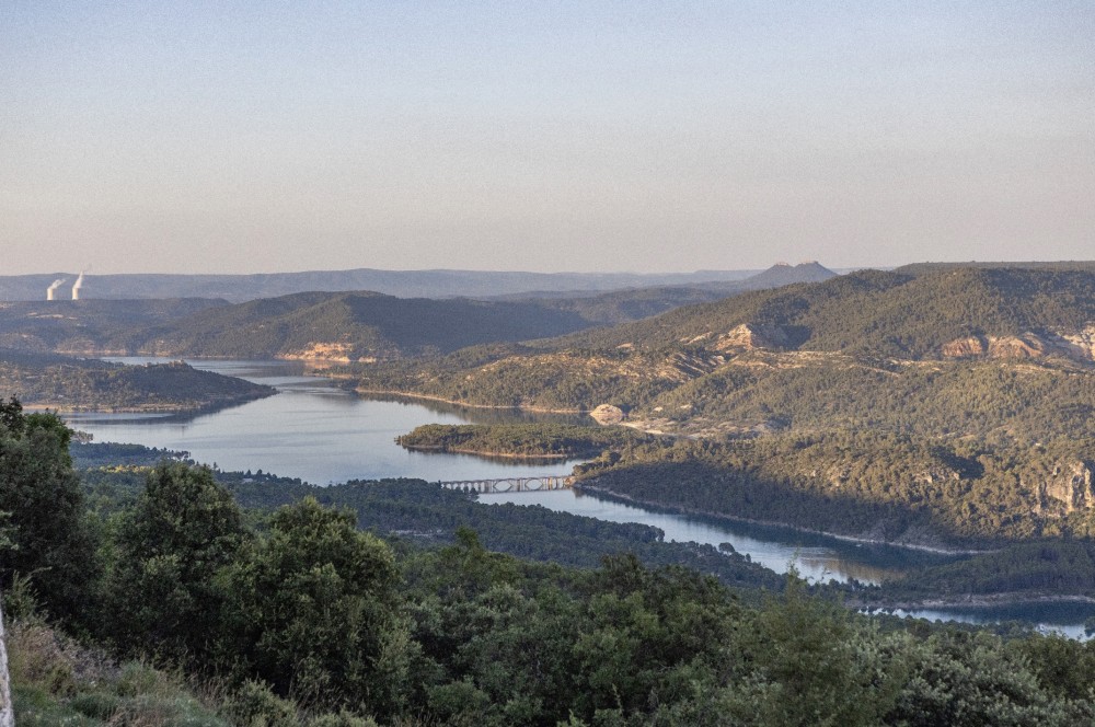 Frente a nosotros, en la otra orilla, se divisa la urbanización Las Anclas, una de las más conocidas de la zona, y símbolo de unos tiempos en los que el pantano era un imán para el turismo, sobre todo procedente de Madrid, y este se prometía como motor del desarrollo económico de la zona. Sin embargo, ese potencial se fue apagando progresivamente al mismo tiempo que el trasvase iba aumentando. La urbanización pertenece al término municipal de Pareja, cuyo pueblo queda a su espalda. En esa misma orilla del embalse se encuentran, en un extremo, Sacedón, el núcleo urbano más importante de la zona, y en el otro, Chillarón del Rey.