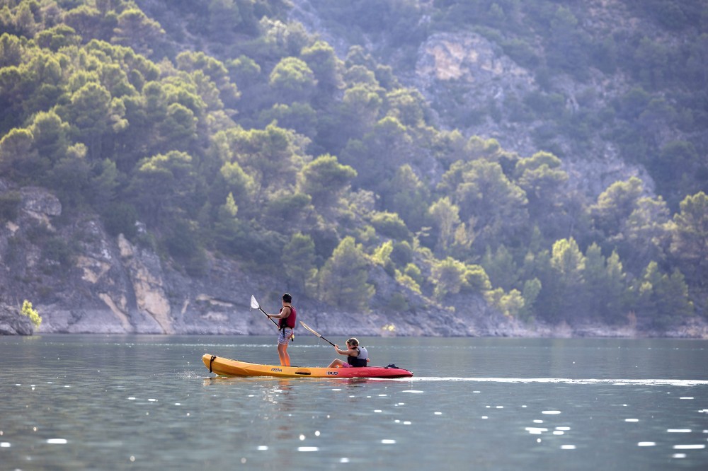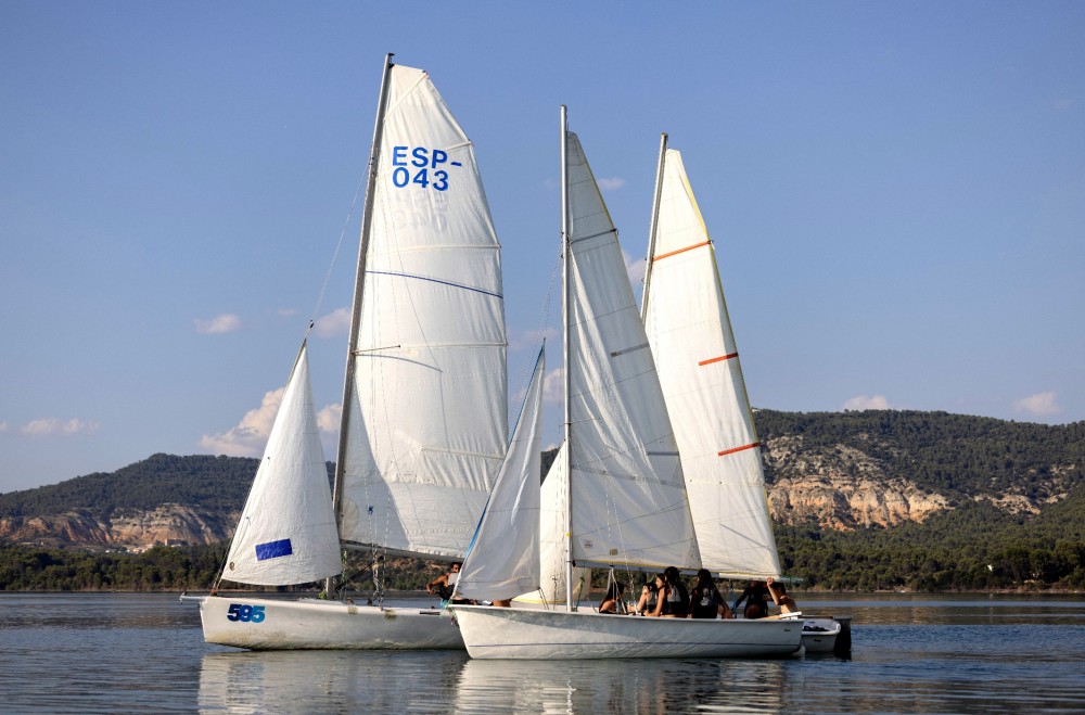 Contagiados de la energía que se respira, y que llega con aroma a tomillo y lavanda, y sintiéndonos afortunados de poder disponer de este maravilloso oasis tan cerca de casa, nos disponemos a llenar la mochila de nuestros propios recuerdos. Somos un grupo de amigos, gente de tierra firme, pero con ganas de probar cosas nuevas. Nos han dicho que no hace falta experiencia previa en deportes náuticos, solo las ganas. Y así es. Nos dejamos llevar por los monitores y al final del día habremos navegado a vela ligera, recorrido el pantano en piragua, practicado windsurf, paddle surf, y llegaremos a casa agotados y con el firme propósito de volver.