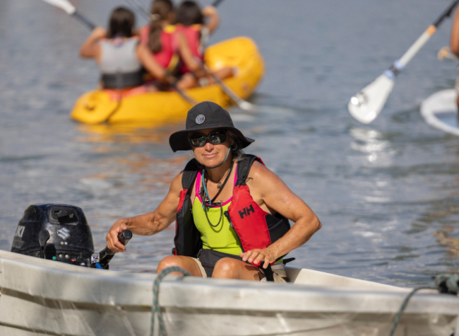 Durante el verano es habitual que esté ocupado de lunes a viernes por campamentos, grupos de niños y jóvenes que pasan unos días aprendiendo todos los deportes acuáticos que se pueden practicar en estas aguas. Lo hacen guiados por expertos monitores, algunos de la zona, porque otra cosa que tiene el club es que genera empleo en el territorio, y supervisados por la propia Pilar Prieto, presidenta del club, u otros miembros de la junta directiva, en la que se encuentran Fernando Polo, jefe del Parque de Bomberos CEIS Guadalajara y técnico deportivo de vela y windsurf; Gonzalo Ruiz, ingeniero de minas y técnico deportivo de vela y windsurf; Ángel Lorente, coordinador de polideportivos y eventos deportivos en Guadalajara y técnico deportivo de piragua, natación, salvamento y socorrismo, además de Paula Siqueira, licenciada en Ciencias de la Actividad Física y del Deporte y Máster en preparación física y alto rendimiento.