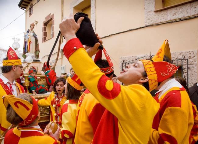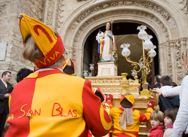 El día de San Blas, tras la misa mayor y cuando aparece la imagen del santo, el entusiasmo se generaliza, en especial de los coloristas botargas-danzantes que gritan y piropean al santo de una manera que parece irreverente, pero que nace da la devoción profunda a su santo patrón. Delante del santo, las botargas danzarán aleatoriamente y le gritarán piropos al abogado de los males de garganta, animados por los tres tamborileros y las dos castañuelas.