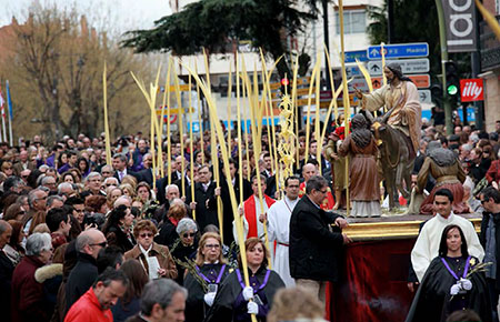 La Semana Santa de Guadalajara inicia sus celebraciones procesionales el Domingo de Ramos, con la bendición de las palmas y los ramos de olivo en la explanada frente a la Iglesia de San Ginés, donde comienza la tradicional Procesión de la borriquilla. La procesión finaliza en la Iglesia de San Francisco, con la imagen de la entrada de Jesús en Jerusalén, acompañada por el Grupo de Tambores de la Cofradía de la Pasión del Señor.