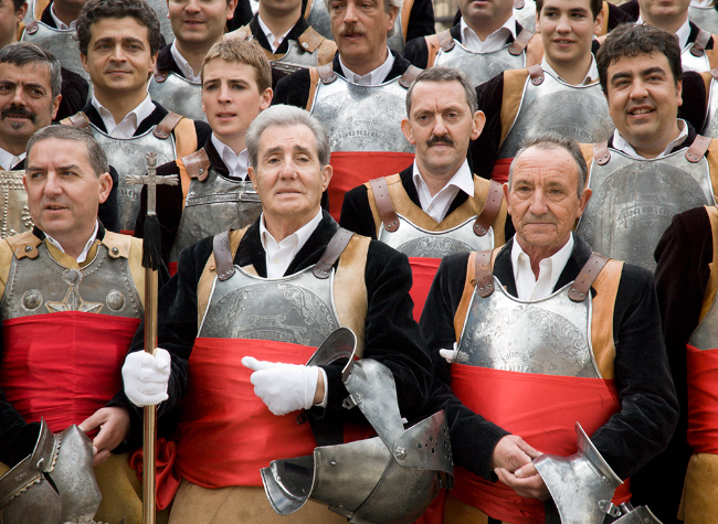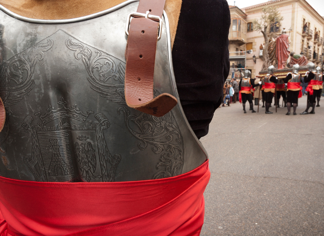 Es curiosa la forma de vestir y es raro ver este tipo de porteadores en la Semana Santa. Sobre traje negro con calzas, los "armaos" llevan jubón, coraza de acero, yelmo, fajín rojo a la cintura, guantes blancos y picas, especie de soldadesca de los tercios de Flandes que resuenan en las medievales calles de Sigüenza.