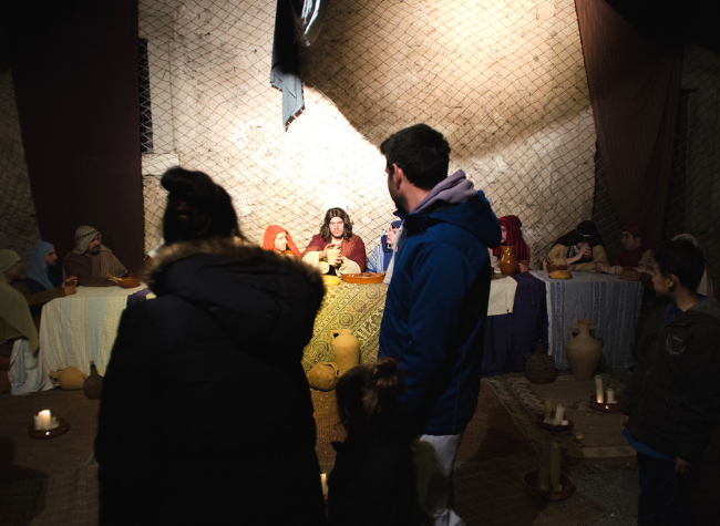 Los actores realizan sus papeles "en vivo" en las trece escenas que se representan, de una manera desinteresada y con un enorme esfuerzo interpretativo, acercándonos a los pasajes más significativos de la Pasión de Jesús.