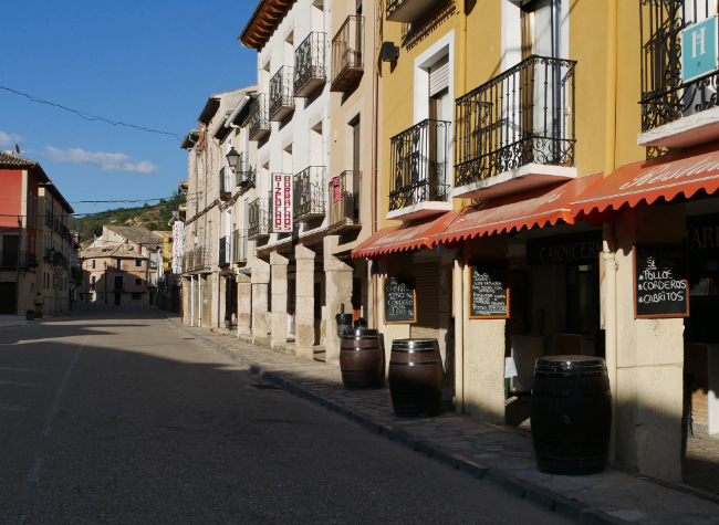Su calle Mayor cubierta en parte de su recorrido con soportales y una arquitectura tradicional de casas típicamente alcarreñas, donde las columnas de piedra o madera ofrecen un recorrido muy especial, que ya fue objeto de comentario por el Nobel en el libro del Viaje a la Alcarria "es un pueblo de soportales planos, largo como una longaniza y estirado todo lo largo de la carretera".