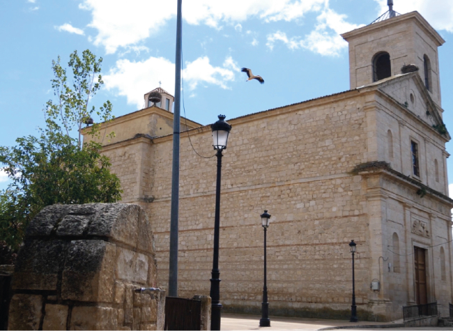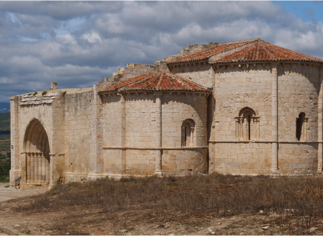 Su bello entorno aparece rodeado de olmos, chopos y masas de sauces. De su patrimonio monumental se encuentra la Iglesia Parroquial de Santa María de la Varga, del siglo XVI, de una sola nave cubierta con bóveda de medio cañón y las ruinas de su magnífica iglesia románica de Nuestra Señora de la Vatga, del siglo XIII, situada en el extremo poniente del pueblo, pudiendo aún disfrutarse de su portada principal, formada por ocho arquivoltas sobre columnas adosadas, excepto la más externa y la más interna que apoyan sobre pilastras.