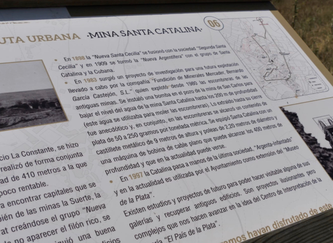 Además, la visita al centro debe complementarse con un recorrido a pie de pocos metros para visitar la Mina Santa Catalina y visualizar desde el exterior de la valla con paneles de una instalación que llegó a tener 600 metros de profundidad.