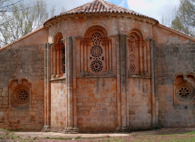 En el ábside lucen tres altos ventanales cuyos vanos se ocupan por magníficas celosías mudéjares con calados geométricos de inspiración judía, verdadero tesoro ornamental del románico castellano.